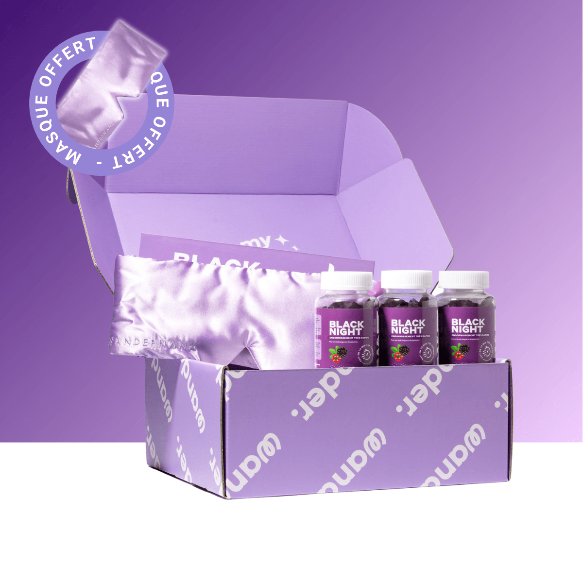 Les gummies à la mélatonine vous aident à vous endormir plus rapidement et à bénéficier d’un repos plus profond, tandis que le masque de nuit supprime toute source de luminosité, maximisant ainsi l’efficacité de la mélatonine.