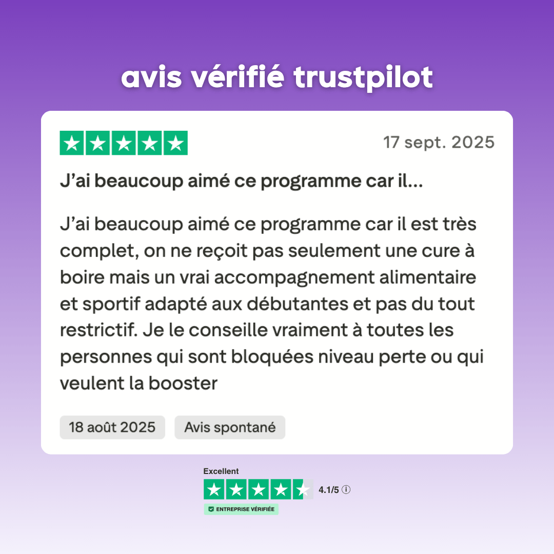 Je suis impressionnée par les résultats ! En trois semaines, j’ai réussi à me sentir mieux dans mon corps et à retrouver un vrai équilibre. Le pack est hyper pratique et bien pensé.