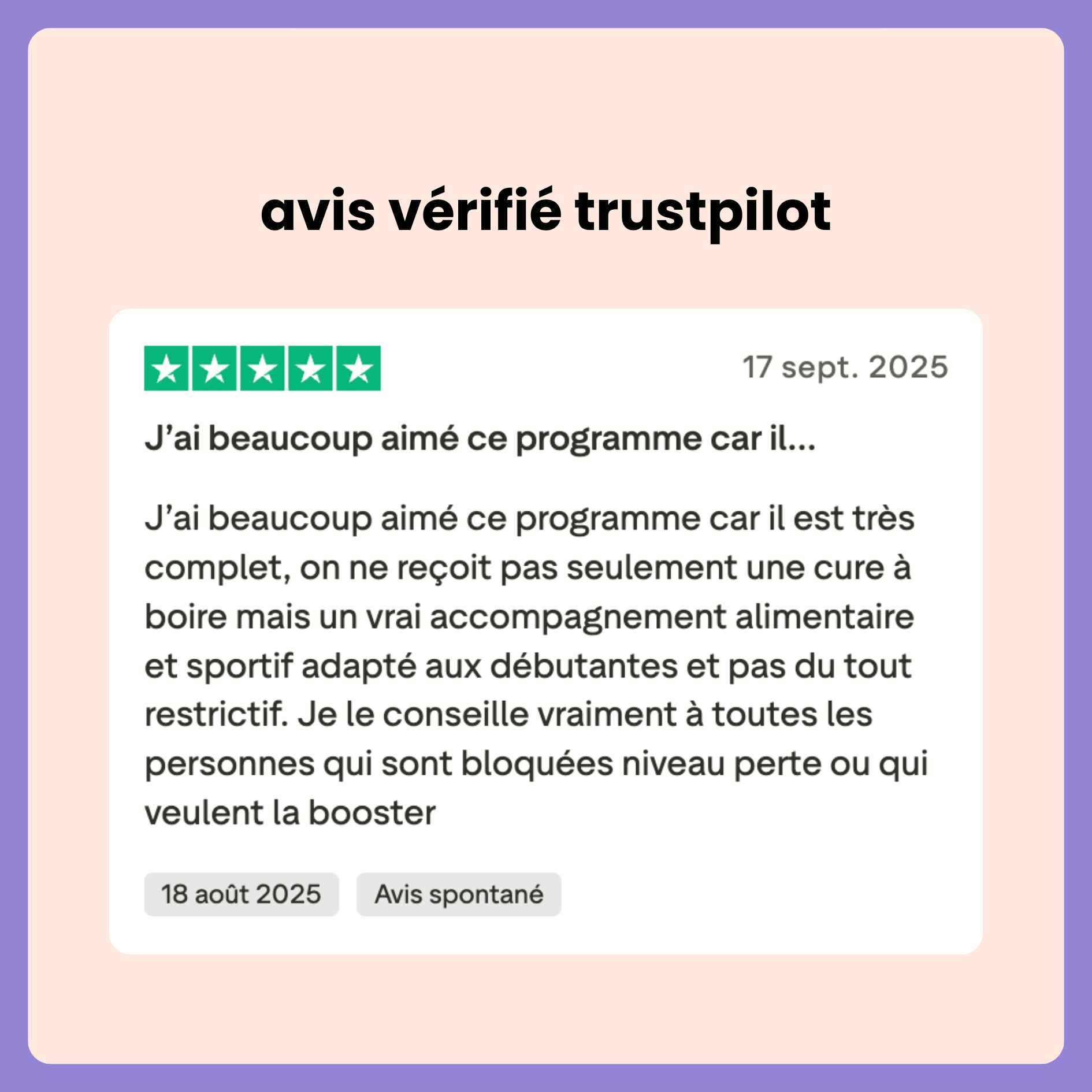 Je suis impressionnée par les résultats ! En trois semaines, j’ai réussi à me sentir mieux dans mon corps et à retrouver un vrai équilibre. Le pack est hyper pratique et bien pensé.