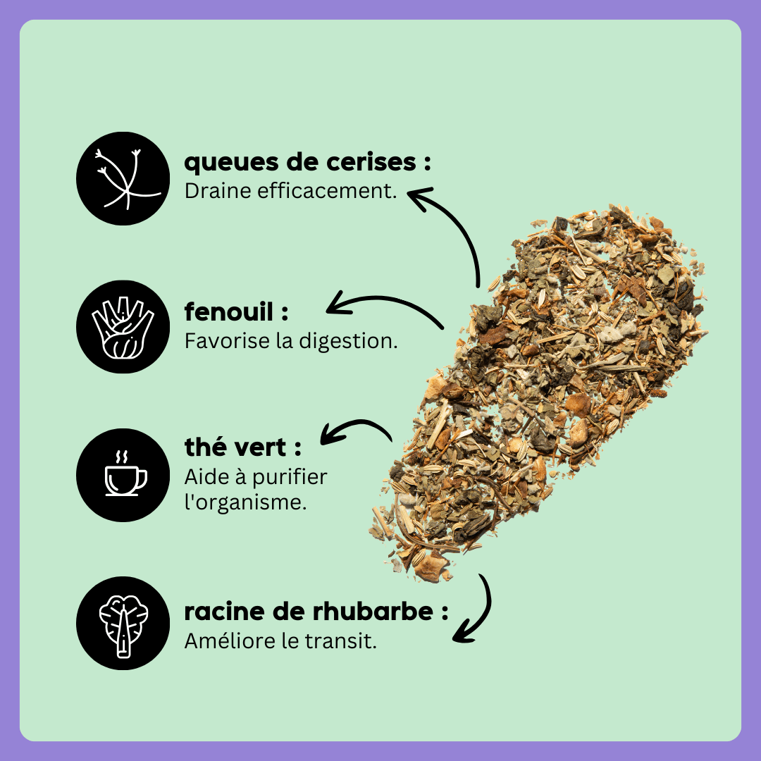 Ballonnée, trop d'excès ? 3 tasses par jour pendant 7 jours pour dégonfler et repartir sur de bonnes bases. Attention, cette cure active peut augmenter les visites aux toilettes.
